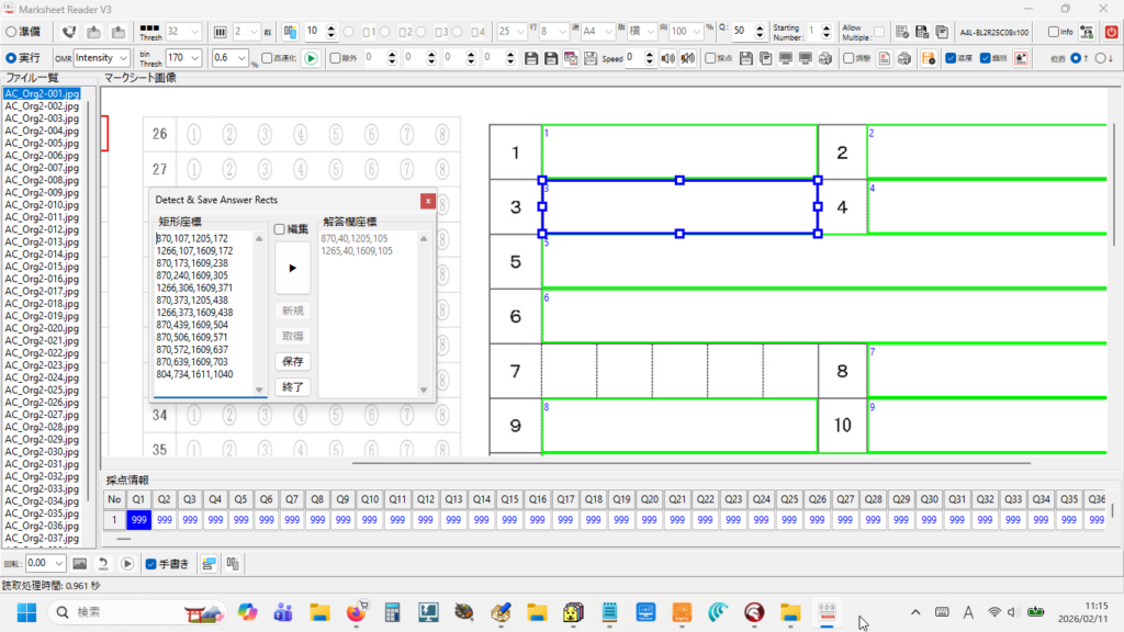 作成中のマークシートリーダーに、手書き答案の採点機能も追加搭載したくなり、そうなるとどうしても必要になるのが、手書き答案の解答欄矩形の座標データ。