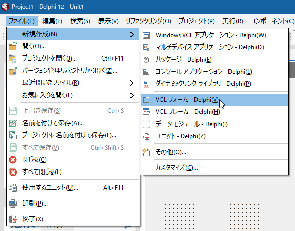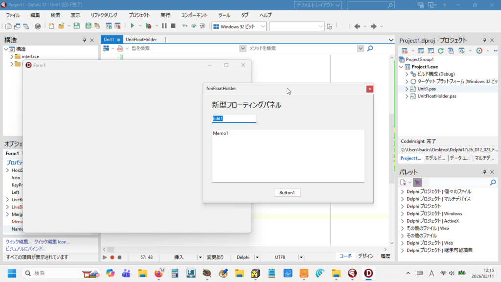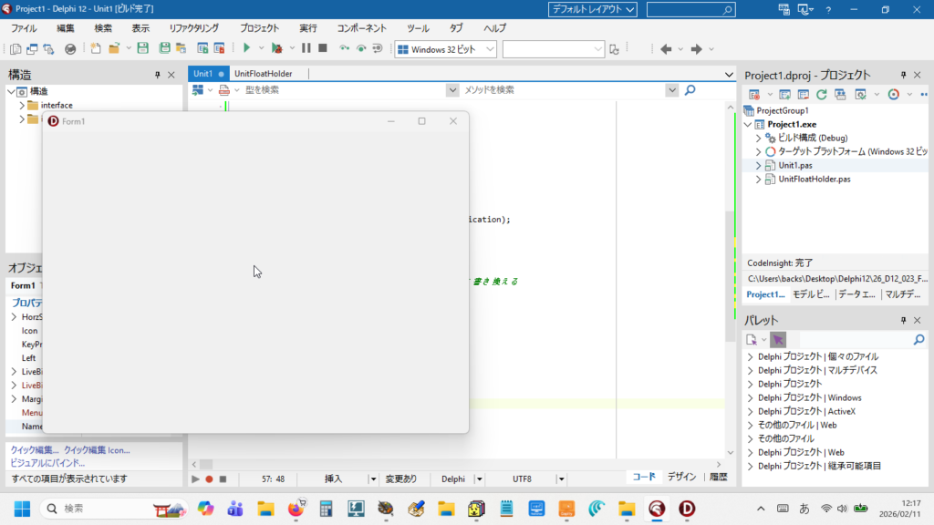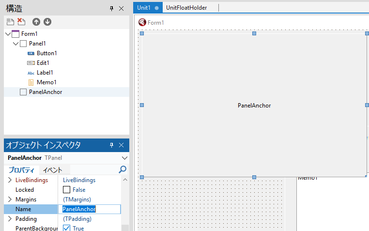以上の設定を終えたら、例:UnitFloatHolder.pas という名前で保存します。