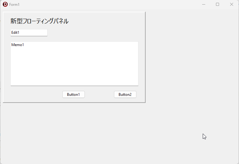 この方法の最大のメリットは「パネル内のコントロールのイベントハンドラは、全部 メインユニットにある」 という点です。メンテナンスが 走召 楽勝。これで WinAPI の知識は不要で、安全でメンテナンスしやすいフローティングパネルが実現できました!