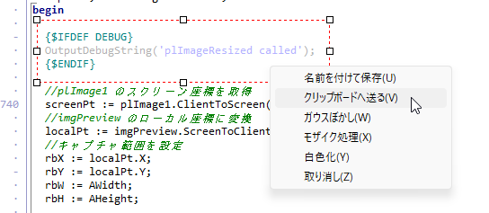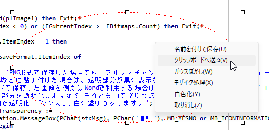 (2)円形選択時のクリップボードへの送信