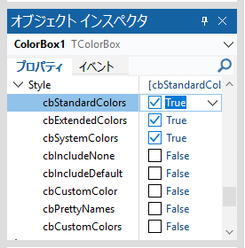 2つ上の図の TColorBox には184色が選択可能な Item として設定されました。
