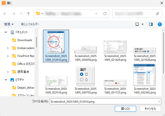 ボタンクリックで TOpenDialog が表示されます。