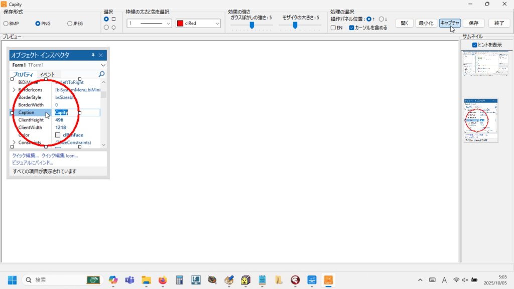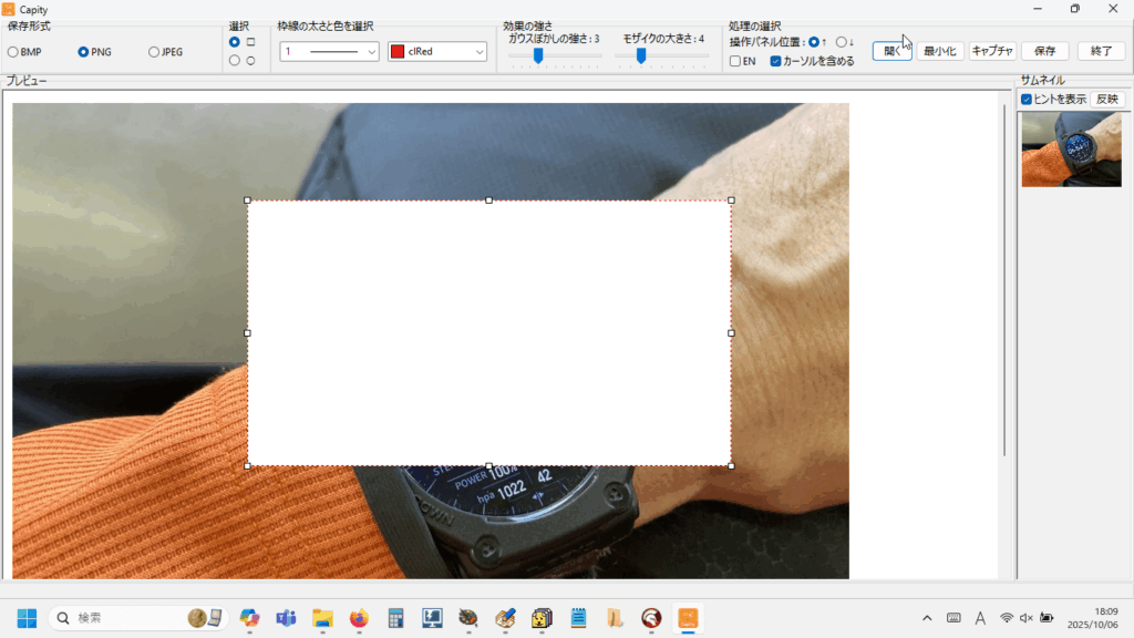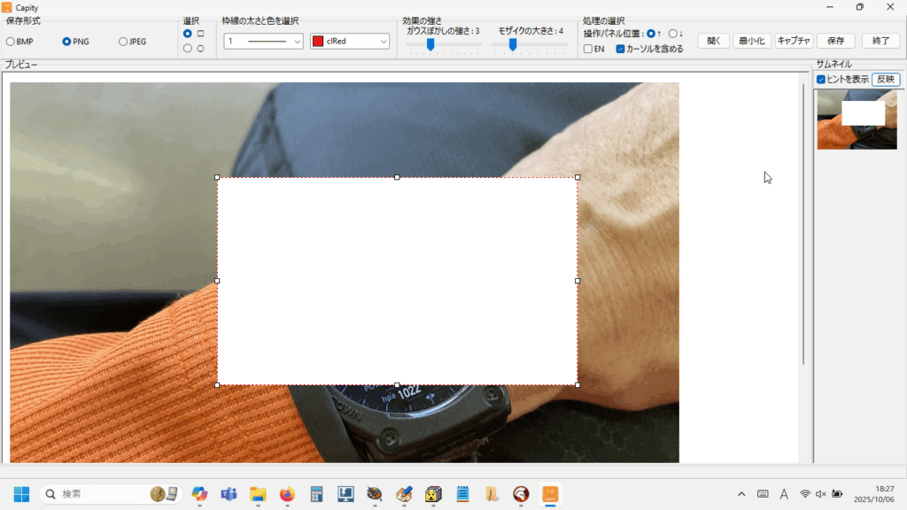 画面右側にキャプチャした画像のサムネイルが表示されます。