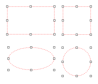 ラバーバンドの形は、円形も選択できるようにしました。Shiftキーを押しながらドラッグすることで、矩形を選択している場合は「四角形 → 正方形」、円形を選択している場合は「楕円 → 正円」へとラバーバンドの形状が変化します。なお、いったん、四角形(長方形)や楕円のラバーバンドを描画し、その後、ラバーバンドのグラブハンドルをクリックしてリサイズする場合も、Shiftキーを押しながら操作すると、ラバーバンドの形状は「四角形 → 正方形」or 「楕円 → 正円」へ変化します。