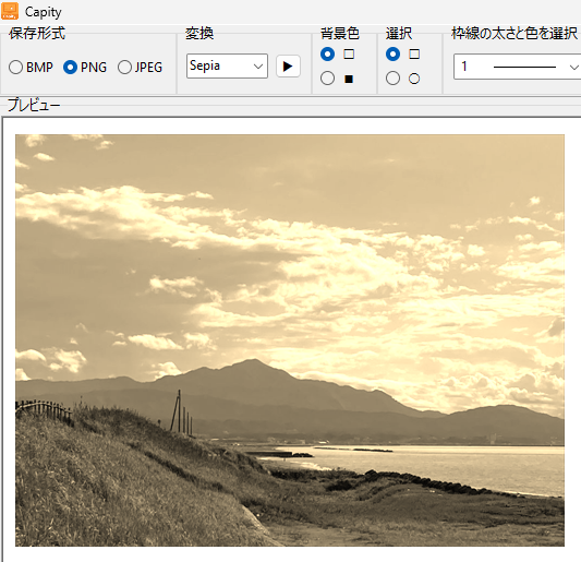 表示されている画像を、Grayscale もしくは Sepia いずれかの画像へ変換できるようにしました。