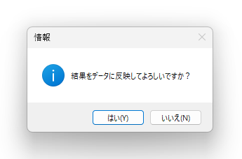 メモリ上のデータに反映するか・どうかの確認が行われます。「はい」で反映され、「いいえ」で「取り消し処理(UnDo)」が実行されます。