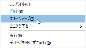 ② 完全な誤り:メニューから [プロジェクト] > [(プロジェクト名)クリーン] をクリックする。